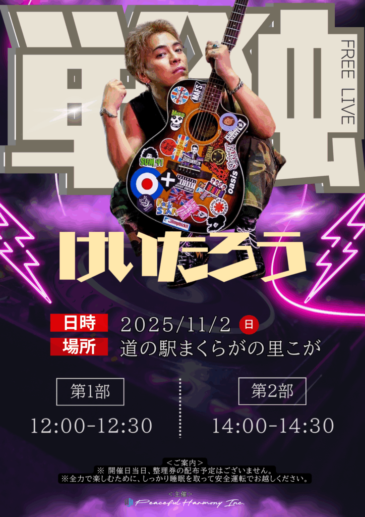 けいたろう単独FREE LIVE 2025 11/02 2025/11/02(日)道の駅まくらがの里こが音響担当 フリーライブ この記事が気に入ったら フォローしてね! Follow @ph_yutapi205 よかったらシェアしてね! URLをコピーしました! URLをコピーしました! スペ♡パラ!<推しはなんぼいてもイイッ!> 楠木康平/はやぶさ/松山優太 関連記事 prink/B.A.C HOMIES/甘党男子 2025年11月20日 安達勇人 2025年11月16日 安達勇人×羽黒花火まつり 2025年11月15日 B.A.C HOMIES単独FREE LIVE 2025年11月15日 寺尾中学校閉校イベント 2025年11月9日 安達勇人 2025年11月3日 楠木康平/はやぶさ/松山優太 2025年11月2日 スペ♡パラ!<推しはなんぼいてもイイッ!> 2025年11月1日