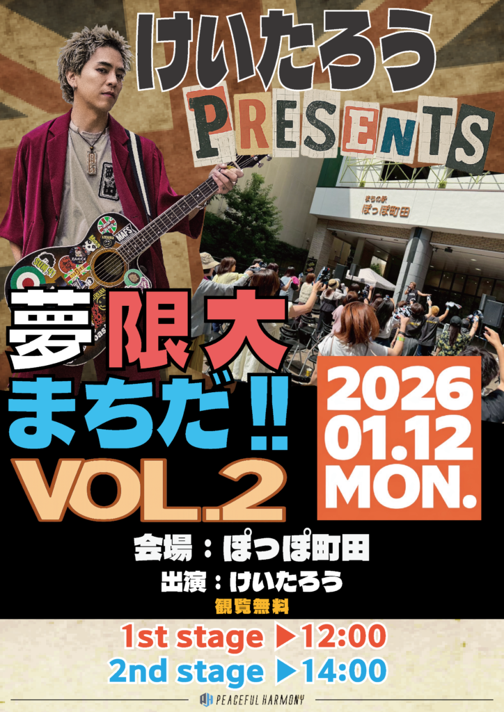 けいたろう単独FREE LIVE 2026 1/12 2026/1/12(月祝)ぽっぽ町田音響担当 フリーライブ この記事が気に入ったら フォローしてね! Follow @ph_yutapi205 よかったらシェアしてね! URLをコピーしました! URLをコピーしました! prink新春ワンマンライブ2026 LIVE CIRCUIT excel✖️OPA 関連記事 LIVE CIRCUIT excel✖️OPA 2026年1月12日 prink新春ワンマンライブ2026 2026年1月11日 安達勇人ワンマンLIVE 2026年1月11日 めん❤️ぱら!Super FES 2026年1月10日 神が残した夢を喰う。単独FREE LIVE 2026年1月10日 安達勇人×鹿島チェリオ 2026年1月4日 けいたろう単独Free LIVE 2026年1月4日 安達勇人×イオンモール下妻 2026年1月3日