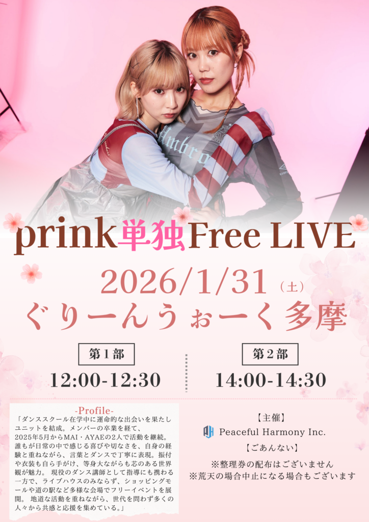 prink単独FREE LIVE 2026 1/31 2026/1/31(土)ぐりーんうぉーく多摩音響担当 フリーライブ この記事が気に入ったら フォローしてね! Follow @ph_yutapi205 よかったらシェアしてね! URLをコピーしました! URLをコピーしました! ~あだちはうす部二学期~ けいたろう単独FREE LIVE 関連記事 B.A.C HOMIES×ヒロファーム 2026年3月1日 風輪×モナキ 2026年2月17日 けいたろう× B.A.C HOMIES 2026年2月15日 道の駅まくらがの里こが× prink 2026年2月15日 けいたろう✖️ヒロファーム 2026年2月14日 B.A.C HOMIES単独FREE LIVE 2026年2月11日 KEITAROK’N’ROLL in FASHION CRUISE 2026年2月11日 けいたろう×B.A.C HOMIES×prink 2026年2月8日