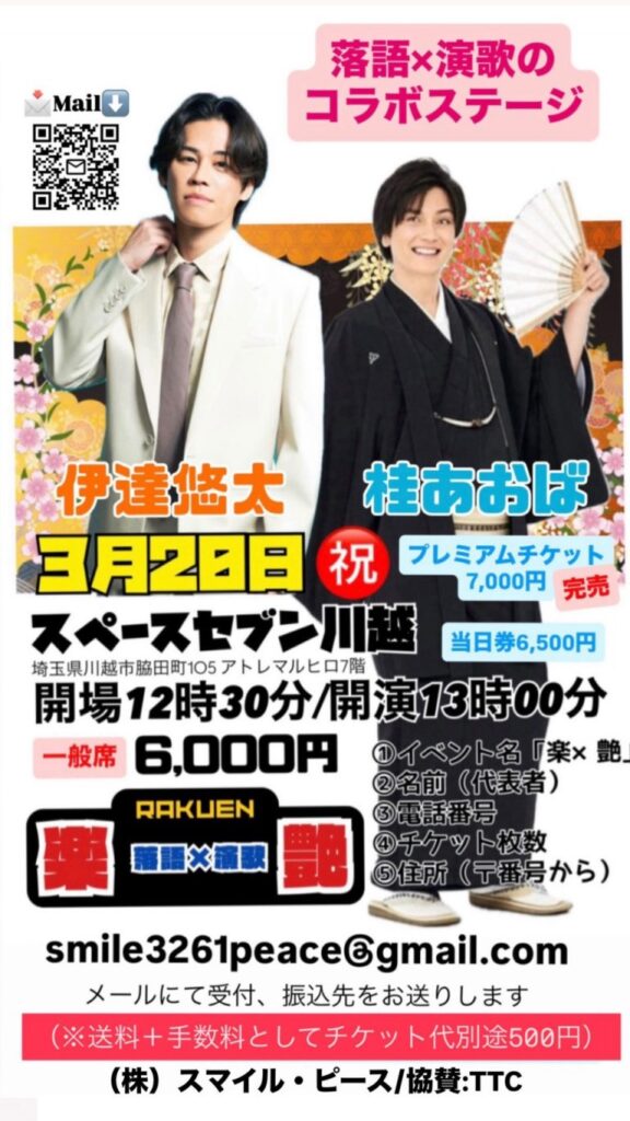 落語×演歌のコラボステージ 2026 3/20 2026/3/20(金祝)川越スペースセブン音響担当 フリーライブ この記事が気に入ったら フォローしてね! Follow @ph_yutapi205 よかったらシェアしてね! URLをコピーしました! URLをコピーしました! ネタ&トークライブ”笑いで疲れを吹き飛ばせ!!” prink×けいたろう 関連記事 Spring Super Fes!<Day2> 2026年3月22日 prink×けいたろう 2026年3月20日 ネタ&トークライブ”笑いで疲れを吹き飛ばせ!!” 2026年3月16日 けいたろう×B.A.C HOMIES 2026年3月15日 夢FES イオンモール木更津 2026年3月15日 道の駅まくらがの里こが×prink 2026年3月15日 B.A.C HOMIES単独FREE LIVE 2026年3月14日 けいたろう単独FREE LIVE 2026年3月14日