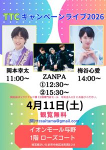 岡本幸太/ZANPA/梅谷心愛 2026 4/16 イベント詳細 日付: 2026年4月11日 カテゴリ: 音響担当<FREE LIVE> この記事が気に入ったら フォローしてね! Follow @ph_yutapi205 よかったらシェアしてね! URLをコピーしました! URLをコピーしました! グラフェスVol.11 モナキ 関連記事 CLOWN’S CROWN presents 『Never GIVE UP INSTORE VER.』 2026年4月16日 Shuffle LIVE【CLOWN’S CROWN】 2026年4月16日 キッチンカーうまいもん!!まつりat新狭山北口商店会 2026年4月16日 イオン秦野×夢フェス 2026年4月16日 モナキ 2026年4月16日 グラフェスVol.11 2026年3月30日 ちゅらさん祭り<3日間開催> 2026年3月24日 Super Music Fes<Day2> 2026年3月24日