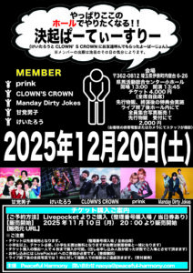 決起ぱーてぃーすりー 2025 11/26 イベント詳細 日付: 2025年12月20日 カテゴリ: 主催<有料開催> ⭐︎prink ⭐︎CLOWN’S CROWN ⭐︎Monday Dirty Jokes ⭐︎甘党男子 ⭐︎けいたろう この記事が気に入ったら フォローしてね! Follow @ph_yutapi205 よかったらシェアしてね! URLをコピーしました! URLをコピーしました! 安達勇人 メルスタフェス2025 関連記事 キッチンカーうまいもん!!選手権@東大宮中央公園 2025年12月3日 けいたろう単独 2025年12月3日 prink単独 2025年12月3日 けいたろう単独 2025年12月3日 prink新春ワンマンライブ2026 2025年12月1日 prink単独 2025年12月1日 安達勇人軽トラLIVEツアー2025 in笠間宿(TOUR FINAL) 2025年11月27日 メルスタフェス2025 2025年11月27日