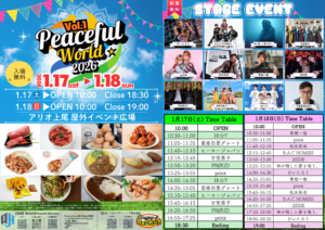 Peaceful World 2026 Vol.1 2025 12/11 イベント詳細 日付: 2026年1月17 – 18日 カテゴリ: 主催<FREE LIVE> この記事が気に入ったら フォローしてね! Follow @ph_yutapi205 よかったらシェアしてね! URLをコピーしました! URLをコピーしました! B.A.C HOMIES単独 関連記事 B.A.C HOMIES単独 2025年12月7日 B.A.C HOMIES /けいたろう 2025年12月7日 キッチンカーうまいもん!!選手権@東大宮中央公園 2025年12月3日 けいたろう単独 2025年12月3日 prink単独 2025年12月3日 けいたろう単独 2025年12月3日 prink新春ワンマンライブ2026 2025年12月1日 prink単独 2025年12月1日