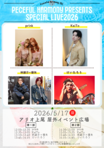 prink/KaiTo/林雄介/優矢/けいたろう 2026 4/16 イベント詳細 日付: 2026年5月17日 カテゴリ: 主催<FREE LIVE> この記事が気に入ったら フォローしてね! Follow @ph_yutapi205 よかったらシェアしてね! URLをコピーしました! URLをコピーしました! おかゆ/華MEN組 藤井香愛 新曲記念ライブ 関連記事 第8回キッチンカーうまいもん!!選手権atレジデンシャルパークSHOWA 2026年4月16日 藤井香愛 新曲記念ライブ 2026年4月16日 おかゆ/華MEN組 2026年4月16日 安達勇人×チェリオ 2026年4月16日 門ふぇす 2026年4月16日 あだフェス 2026年4月16日 ADACHI HOUSE学園 大運動会&文化祭 2026年4月16日 あだちはうす部 2026年4月16日
